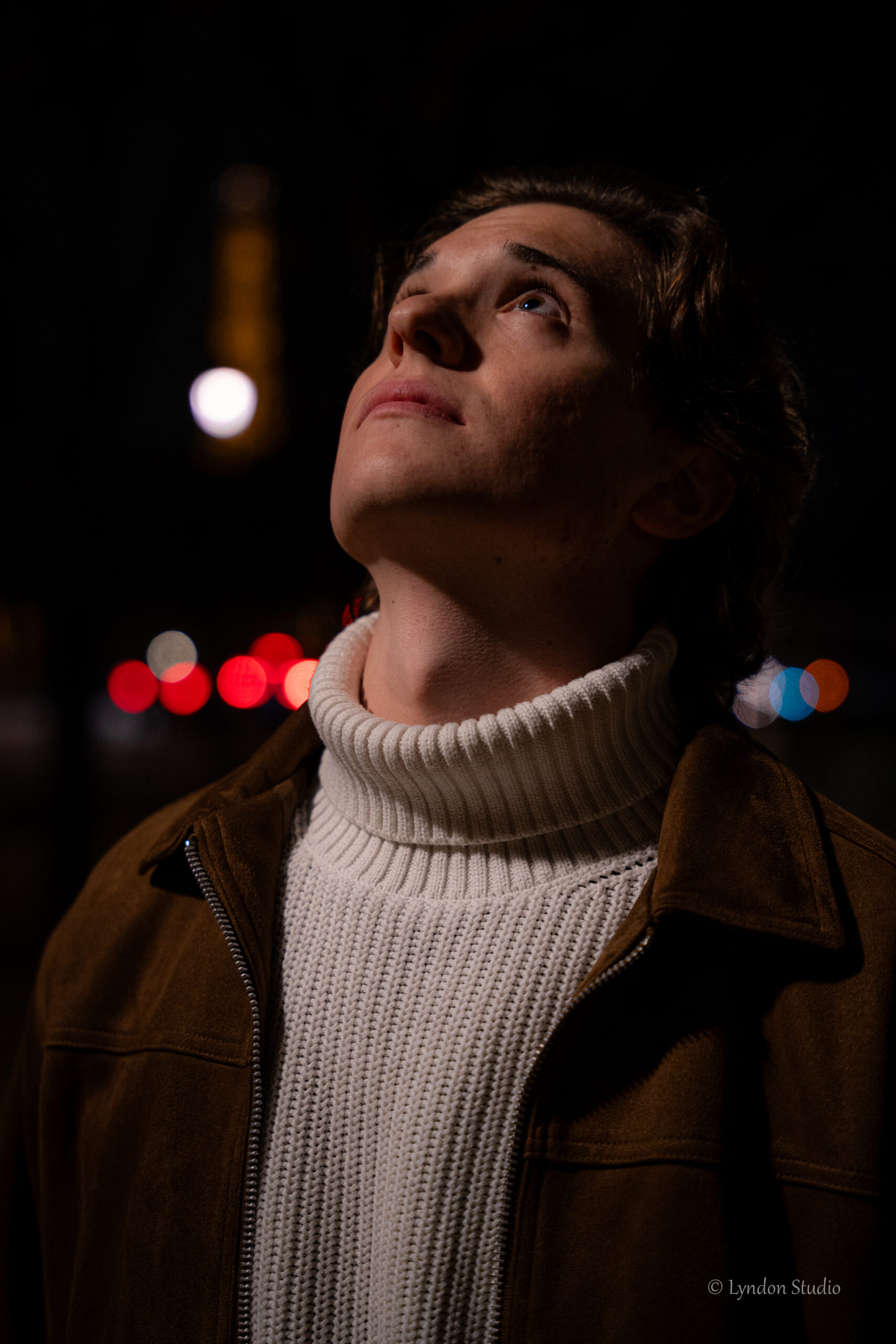 Je conseille à Théodore de retirer sa veste, afin de mieux capturer la lumière qui se reflète dans la nuit. Son expression de marbre n’a d’égal que sa détermination acharnée.